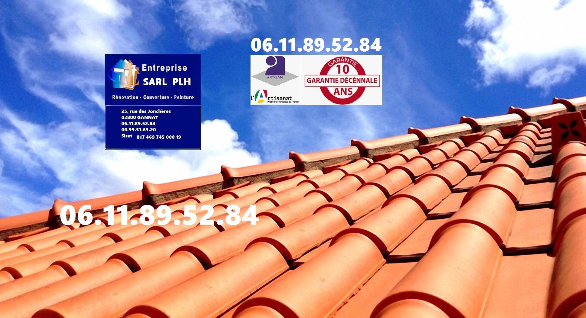 L’entreprise SARL PLH Couverture est implantée depuis plus de 18 ans à GANNAT. Elle intervient sur tout le département de l’ALLIER pour tout travaux de toiture, façade, maçonnerie, plâtre et peinture. ATTENTION NOUVELLE ADRESSE de l’Entreprise :